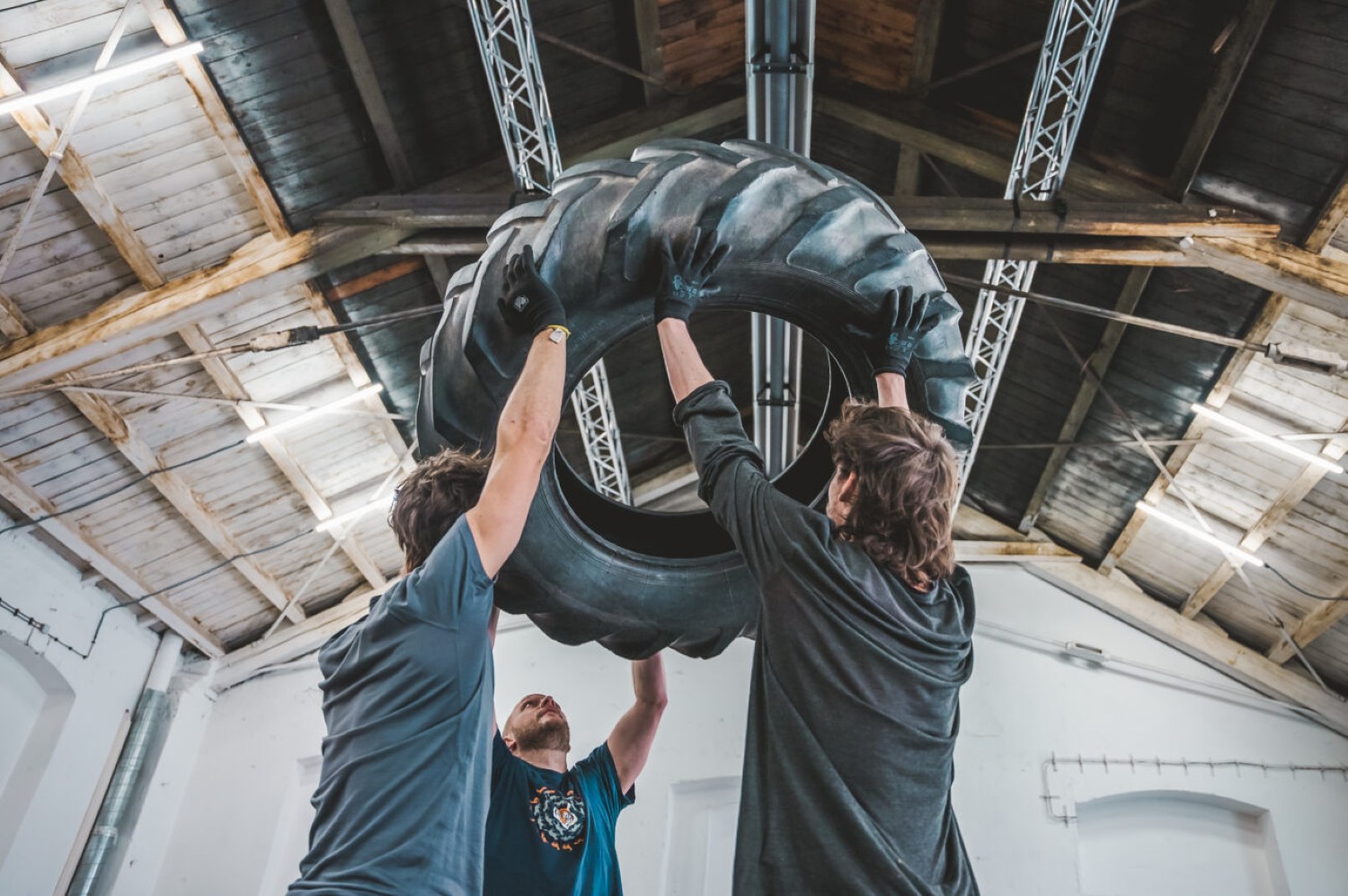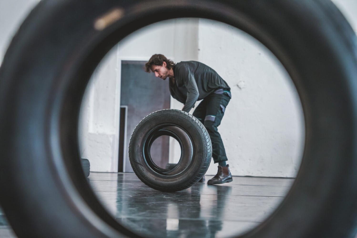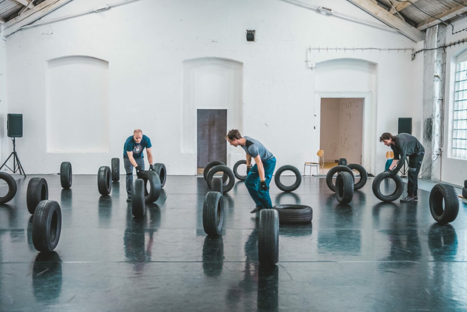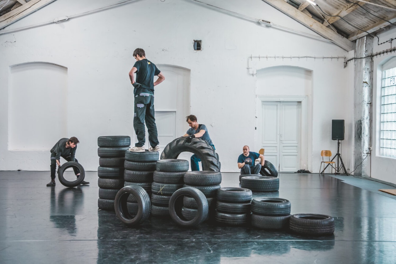 Čtyři těla a stovky kilogramů pneumatik se propojují ve fyzicky náročném představení, které zkoumá křehké vztahy mezi lidmi a jejich prostředím. Nepředvídatelná hromada pneumatik, která dominuje scénografii a určuje lidské jednání, se postupně proměňuje v živou a dynamickou architekturu. PNEU je performativním hřištěm, kde pravidla nečekaně mizí a zase se objevují, chaos se stává strukturou a nerovnováha hybnou silou.